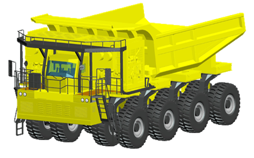 采用合能電驅(qū)動系統(tǒng)的新型節(jié)能多軸重型礦用自卸車,已經(jīng)載重240噸進行了2000公里的路面各項試驗,在內(nèi)蒙古露天礦克服當(dāng)?shù)亓阆滤氖鹊膼毫犹鞖鈼l件,每天分三班正式運行。該車采用4軸線、8個懸架、16×16全輪驅(qū)動、全輪轉(zhuǎn)向等結(jié)構(gòu)形式,綜合運用了雙發(fā)動機聯(lián)合動力、多車輪獨立電驅(qū)動技術(shù)、大行程液壓懸架、擺動軸技術(shù)、箱型車架、液壓制動和轉(zhuǎn)向、遠程監(jiān)控自動診斷等先進技術(shù),提高了車輛道路適應(yīng)性,降低了道路維護頻次和成本,延長了輪胎壽命,同時具有轉(zhuǎn)彎半徑小、機動性能好、供貨周期短、采購及維護成本低等優(yōu)點,別適應(yīng)于大中型露天礦山開采運輸和大型工程施工。